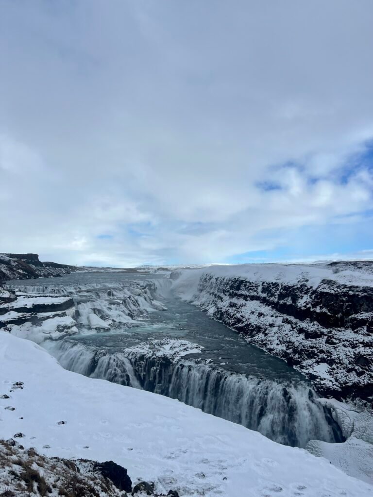 Morning: We landed bright and early at 7am in Iceland, ready to kickstart our adventure! We headed straight to the iconic Blue Lagoon which is only a 30 minute bus ride from the airport. Soaking in the steamy, mineral-rich waters with a picturesque volcanic backdrop was the perfect way to shake off the travel fatigue. The day we went was absolutely freezing but once you step into the water it is so warm it feels amazing!